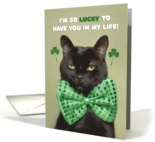 Tell someone that you are "lucky" to have them in your life with this super sweet face of a black cat in a big green bow tie when you wish them a Happy St. Patrick's Day!
