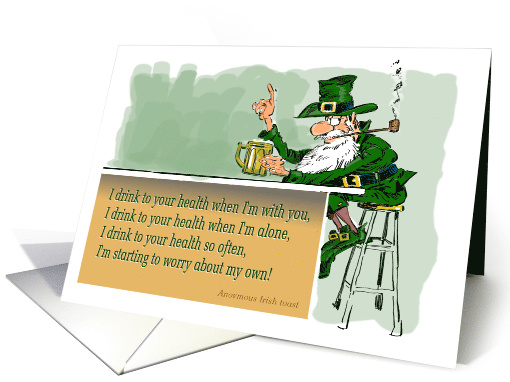 | Artist Notes: | Here's a cartoon recognition of a great holiday, St. Patrick's Day, and an old Irish toast standard. Inside is an invitation to get together for a beer and blather. |