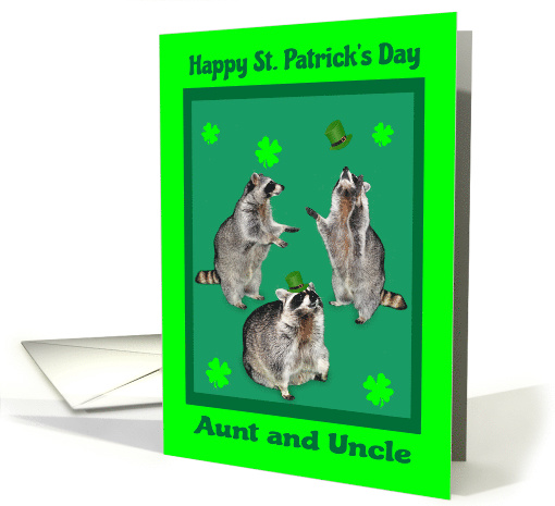 | Title: | St. Patrick's Day to Aunt and Uncle, Raccoons with shamrocks, hats |