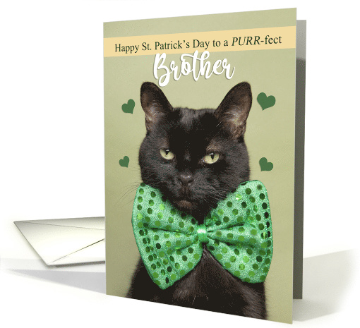 | Title: | Happy St. Patrick's Day Brother Cute Black Cat in Green Bow Tie |