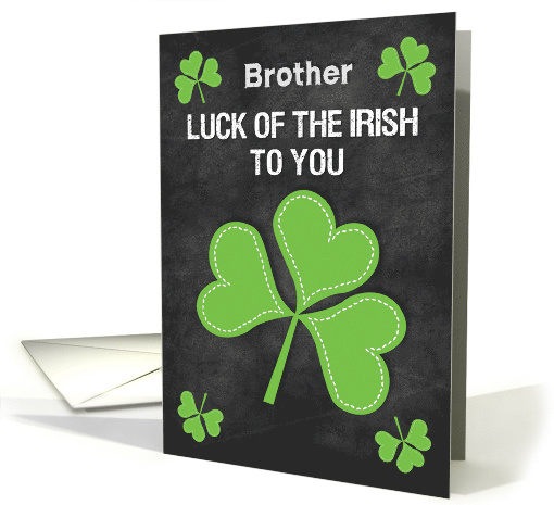 | Artist Notes: | Say Happy St. Patrick's Day to your brother with this design of a big shamrock and little shamrocks on a chalkboard effect background. The front sentiment is "Luck of the Irish to You" and the inside verse is an Irish quote by an unknown author. |