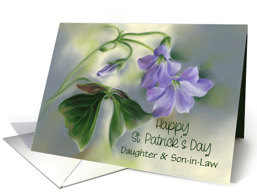 | Artist Notes: | Charming shamrock flowers in soft pastel shades of purple with green leaflets of three on a yellow and gray backdrop decorate this card that is easily personalized to wish your daughter and her spouse, or anyone, a happy Saint Patrick’s Day. |