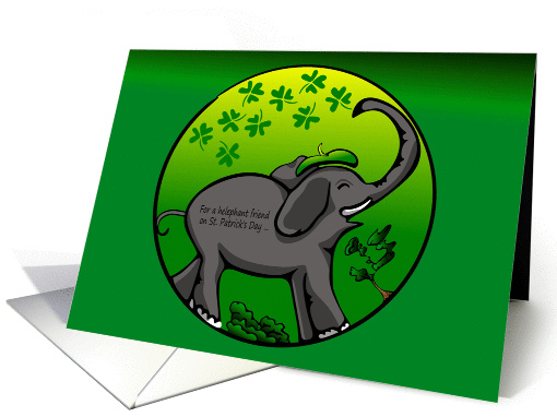 Artist Notes: | Elephant St Patrick's Day Friend - LD Gonzalez 2016 For a helephant friend on St. Patrick's Day. This elephant is spraying a few lucky clovers your way. Illustration by LD Gonzalez. |