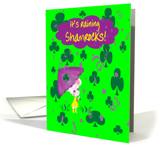 A St. Patrick’s day card for a special granddaughter with a cute white mouse and umbrella and green shamrocks raining down to wish her a happy St. Patrick's Day. This original design by artist c.a teresa can be Personalized on the inside with her name, any added text, or you may even upload photo all at no additional charge!