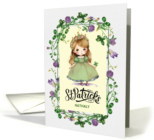 Send your love and warm St. Patrick's Day wishes to your special Granddaughter with this Hand Painted Cute Little Irish Princess design Greeting Card. Personalize the name on the front of the card, inside greeting and add your own photo (optional).