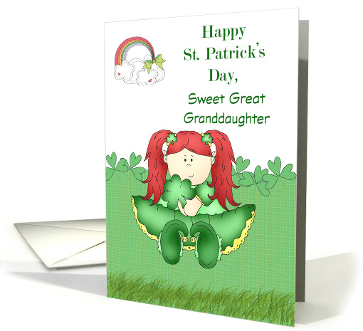 | Inside: | Sweet Great Granddaughter, Since you have a little Irish in you too, we are sending this card to wish you a happy St. Patrick's Day, with all the beautiful blessings it brings. |