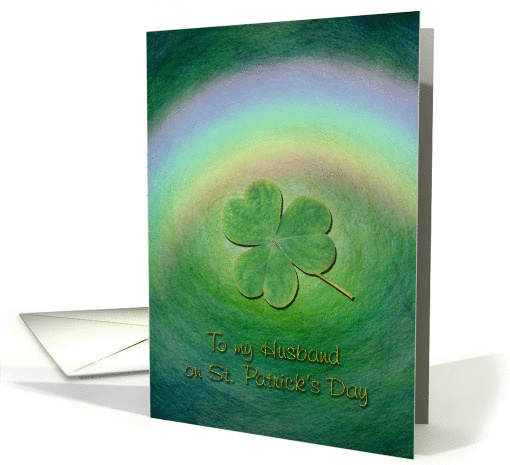 Artist Notes: | A highly detailed and very lucky 3 - leaf clover sits under a pastel colored rainbow on a beautifully swirled textured look multi toned background on the gorgeous St. Patrick's day card. This particular card is to a Husband. |