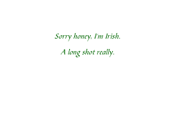 | Inside: | Sorry honey, I'm Irish. A long shot really. |