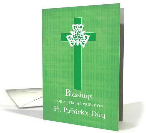Artist Notes: | Don't forget to send Irish blessings to your priest on St. Patrick's Day with this Celtic design on the cross, set on a green textured-look background. |