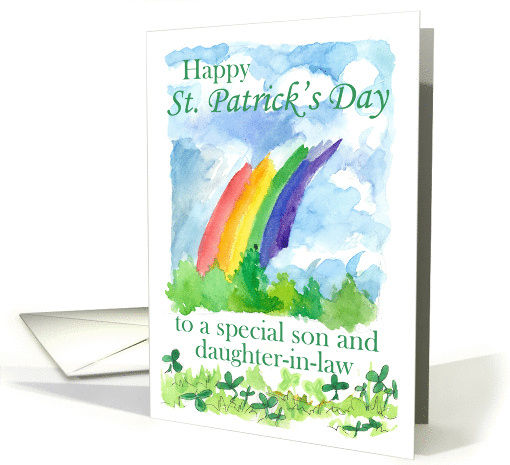 | Title: | Happy St. Patrick's Day Son and Daughter in Law Rainbow Clover Watercolor |