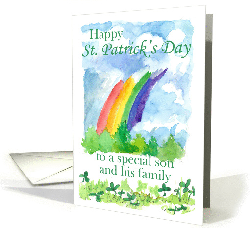 | Title: | Happy St. Patrick's Day Son and Family Rainbow Clover Watercolor Art |