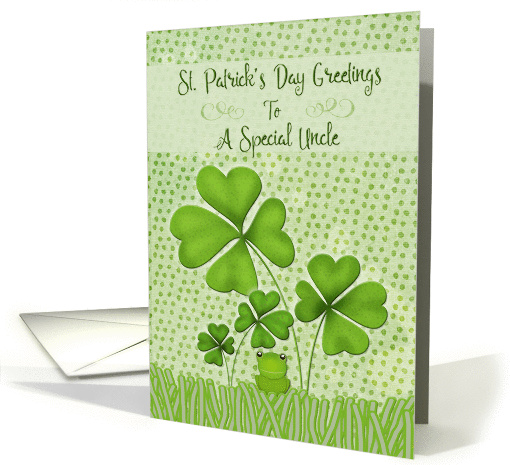 | Title: | Happy St. Patrick's Day to a Special Uncle Four Leaf Clovers Frog |
