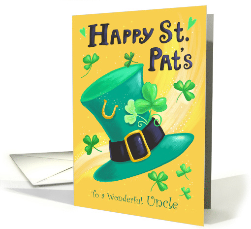 | Artist Notes: | Joyful St Patrick's Day design for a Wonderful Uncle. Illustrated with a tall green leprechaun's hat and lucky shamrocks. Inside text is an Irish verse. ©DaleSimpson |