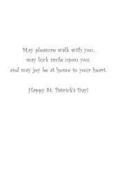 | Inside: | May pleasure walk with you, may luck smile upon you, and may joy be at home in your heart. Happy St. Patrick's Day! |