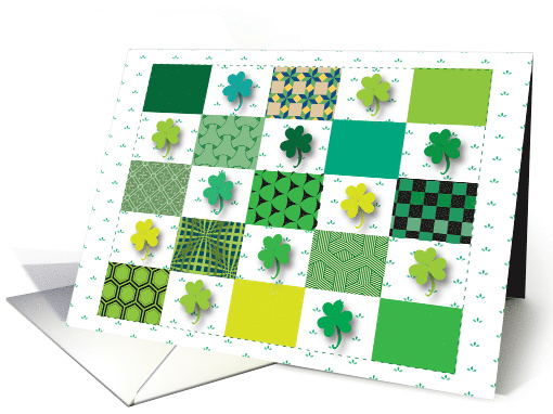 Give this colorful 'quilt' of shamrocks for St. Patrick's Day. The cover features my digital designs of different print patterns on a white and green tiny print background. The inside message may be changed, if you wish. © Gail Pepin