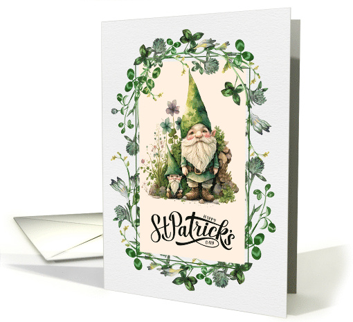 Artist Notes: | Send your love and warm St. Patrick's Day wishes to your family and friends with this cute hand painted Gnomes design Greeting Card. Personalize inside greeting with your own text and add your photo (optional). |