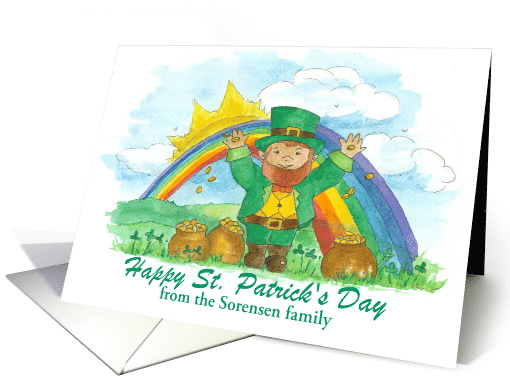 Artist Notes: | A St. Patrick's Day card that you customize with your name and message decorated with a happy leprechaun who's been lucky with finding the gold at the end of the rainbow. |