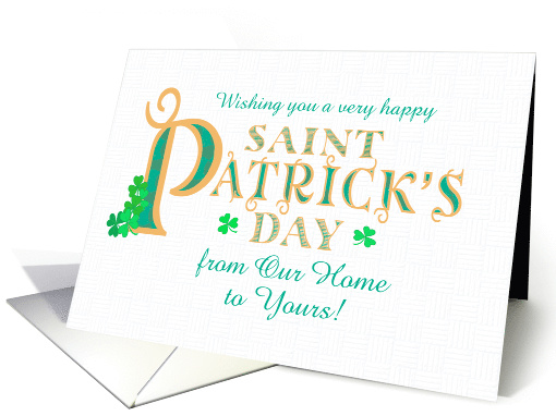 Title: | St Patrick's from Our Home to Yours Shamrocks and Gold Coloured Text |