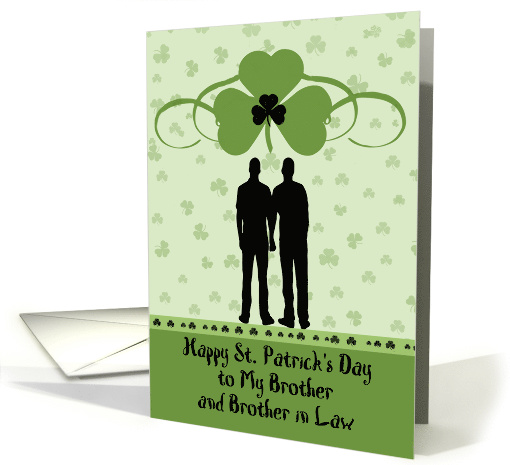 | Artist Notes: | St. Patrick's Day for Brother and Brother in Law. The design is shamrocks both large and small, and a silhouette of two men holding hands.. Great card for the purpose. Thanks to Pixabay and Obsidiandawn for some of the elements in the design. |