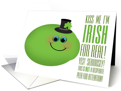 Artist Notes: | A silly little lime, wearing a top hat with a shamrock tucked into the band, is desperate for a kiss. He assures us that he wouldn't "lime" about being Irish. A bit of blarney for St. Patrick's Day. Please feel free to add to, or change, the inside message to make this card your own. |