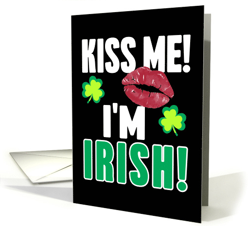| Artist Notes: | Wish someone a happy St. Patrick's Day with this unique card featuring the message "Kiss Me! I'm Irish!" with red lips and clover accents on black background. Inside can be customized with your own message. |