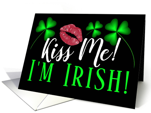 | Artist Notes: | Wish someone a happy St. Patrick's Day with this unique card featuring the message "Kiss Me! I'm Irish! Design features red lips, heart, clover accents on black background. Inside can be customized with your own message. |