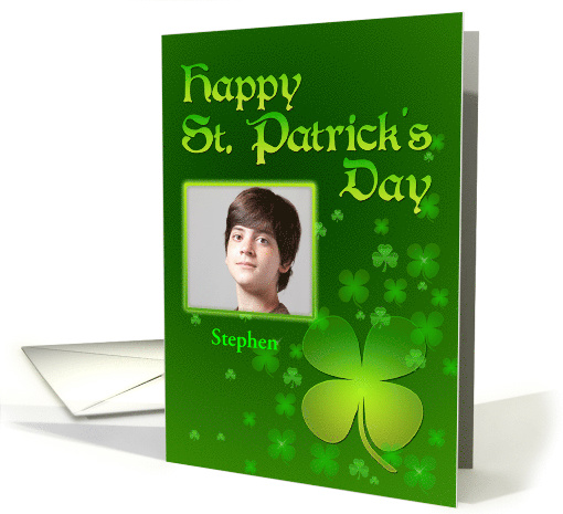 A St Patrick's day card full of green shamrocks. Add a photo and a name to make this a unique St. Patrick's Day card for someone you love.