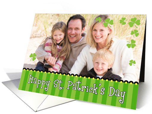 Title: | St. Patrick's Day Photo Greeting Card, Stripes and Shamrocks |