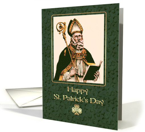 Send St. Patrick's Day love and blessings to your family and friends with this religious greeting card with a Vintage Saint Patrick painting and personalized inside greeting.