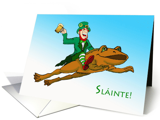 | Title: | Sláinte Leprechaun Riding a Frog and Drinking Beer |