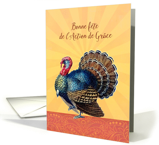| Artist Notes: | Translation Bonne fête de l'Action de grâce: "Happy Thanksgiving" in French. This card features a vintage image of a turkey (courtesy Graphicsfairy) on a red and yellow/orange background. Perfect for all who like a retro/vintage look. |