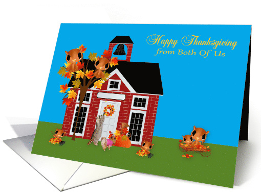Wish anyone in general Happy Thanksgiving from both of us with an adorable raccoon, Bullwinkle reaching for an Autumn wreath with a cute owl sitting in it while a cute Pomeranian, Ava is watching. The background is decorated with owls raking the leaves and sitting in a tree against a blue sky. FYI: Owls can turn their heads as much as 270 degrees. They are farsighted, meaning they can’t see things close to their eyes clearly. They are very quiet in flight compared to other birds of prey. The color of their feathers helps them blend into their environment (camouflage).