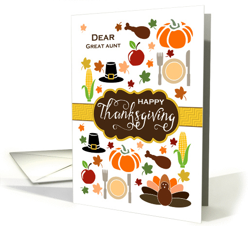 | Artist Notes: | Sweet fall icons of turkey, Pilgrim hat, pumpkin, drumstick, apple, plate, fork and knife, corn and colorful autumn leaves in dark red, orange, red and green form a trendy, ornate and very cute Thanksgiving icons card for your great aunt |