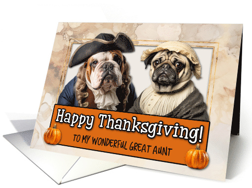 | Artist Notes: | A pilgrim english bulldog and pug couple - who probably came over to America on the Mayflower - wish you a "Happy Thanksgiving! to my wonderful great aunt" A fun design to send to your great aunt for Thanksgiving. |