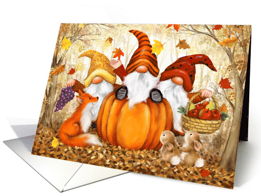 Gnomes with Autumn Fruits and Friends Happy Thanksgiving