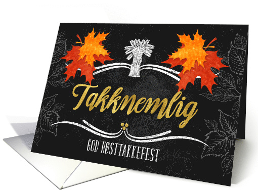 | Artist Notes: | Thanksgiving gratitude and blessings is the message of this chalkboard and autumn themed holiday greeting in Norwegian for those who embrace their Norway heritage, but call the United States their home and celebrate the harvest season here in the states. |