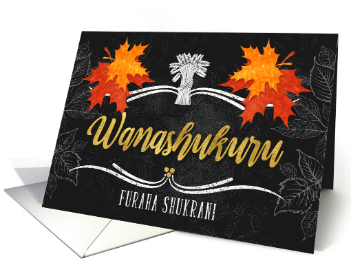 | Artist Notes: | America has so many beautiful cultures represented in it's country' residents and some speak Swahili in their homes, even though they reside here. This lovely autumn harvest Thanksgiving card offers the Swahili speaking person or family Thanksgiving greetings of gratitude and blessings, all in a chalkboard style for a modern and trendy feel. |