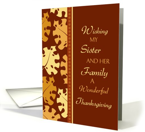 Happy Thanksgiving Sister & her Family Card - Fall Leaves