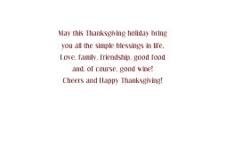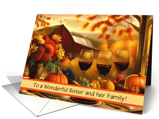 To a wonderful sister and her whole family on the day that we think about our blessings. A cute country setting with wine.