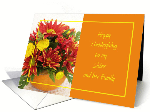 This gorgeous bouquet of chrysanthemums in a pumpkin make a delightful way to say Happy Thanksgiving to your sister and her family.
