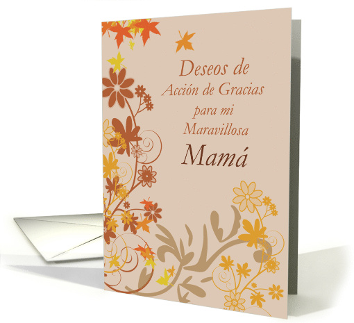 | Inside: | Por ti, Mamá, el mundo es un mejor lugar. Que tu Día de Acción de Gracias esté lleno de tantas bendiciones como las que tú has dado a los demás. Que tengas un, ¡FELIZ DÍA DE ACCIÓN DE GRACIAS! |
