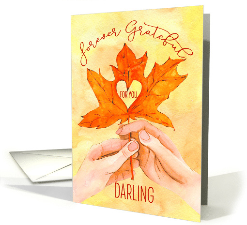 Express your gratitude and love to your darling wife with this autumn themed Thanksgiving card filled with both thanks and giving.
