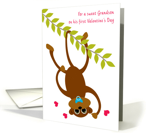 Grandson Baby's First Valentine's Day Monkey Swinging
