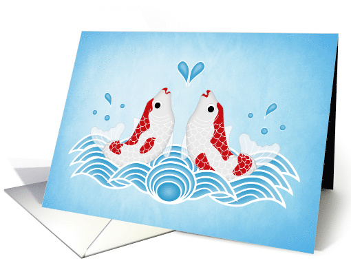 | Artist Notes: | This Valentine's Day card features a digital art drawing of two loving kuchibeni "lipstick" koi fish who have combined their water drops to form a heart. The customizable text on the inside says "All of my love to the one who reflects my soul. Happy Valentine's Day!" |