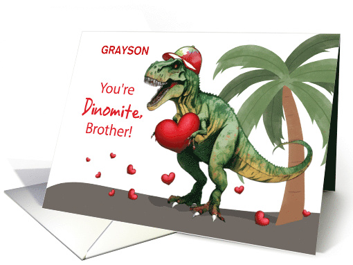 | Artist Notes: | Make this Valentine’s Day card extra special by personalizing it with your brother’s name on the front. The cheerful message, "You're Dinomite, [Name]!" adds a playful and heartfelt touch, letting him know just how much he means to you. |