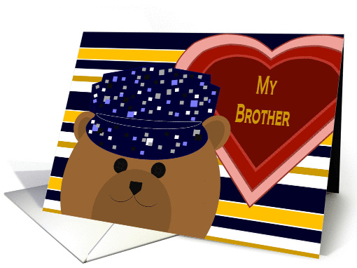 | Inside: | When I think of you, my heart fills with memories and love. Knowing that you have chosen to serve our nation in the U. S. Navy, almost makes my heart burst with pride. I love you. HAPPY VALENTINE'S DAY to my WONDERFUL BROTHER! |