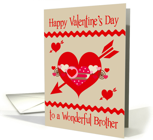 | Title: | Valentine's Day To Brother, red, white and pink hearts with arrows |
