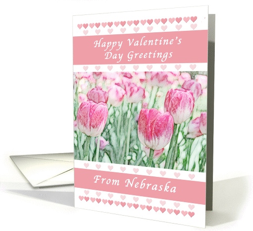 | Title: | Happy Valentine's Day Greetings, Nebraska, Pink Heart & Tulips |