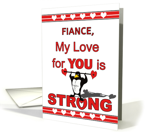 | Artist Notes: | Valentine greeting card for a fiance. Modern red, white, and black design of a penguin pumping iron to keep the love strong. Muscle penguin from hgomez/openclipart. |