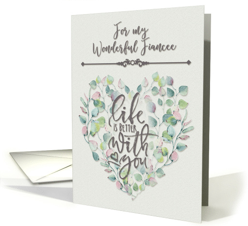 Artist Notes: | Say Happy Valentine's Day to your wonderful fiancee with this pretty design featuring a big heart made of dainty leaves with a modern word art sentiment "life is better with you." |
